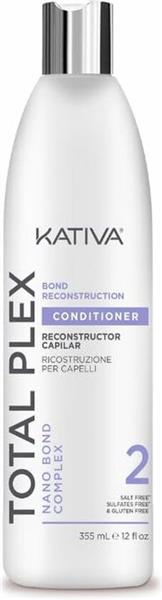 Kativa Total Plex Bond Reconstruction Conditioner 355ml biedt geavanceerde haarreparatie, revitaliseert de haarstructuur en maakt je haar sterker en weerbaarder.