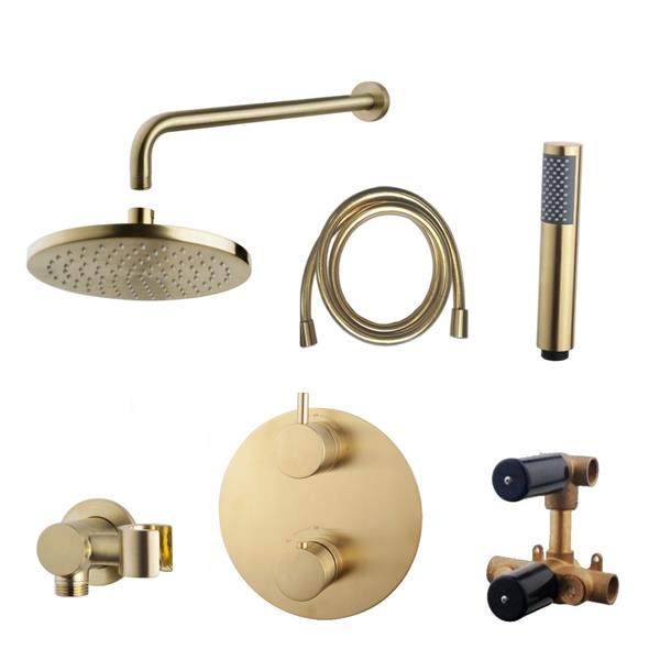 - Wiesbaden Inbouw Regendouche Set Caral Rond Muuruitloop Geborsteld Messing Goud PVD Coating